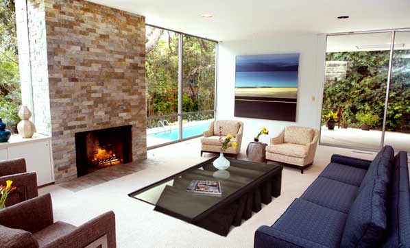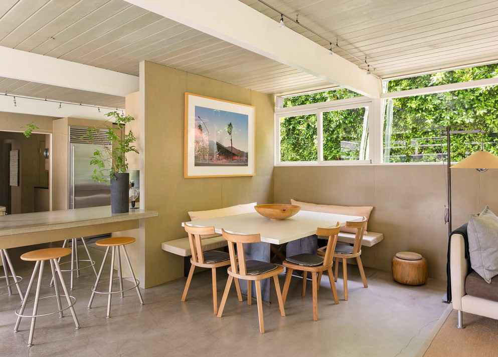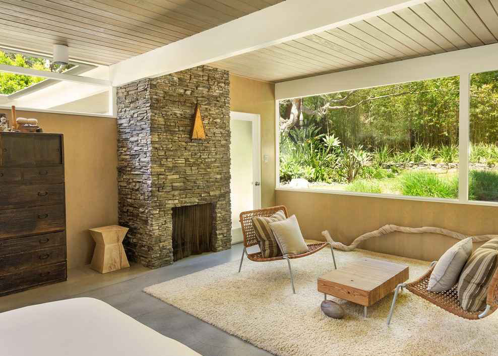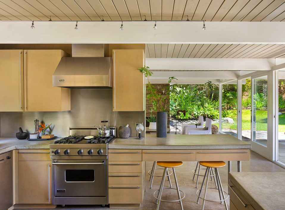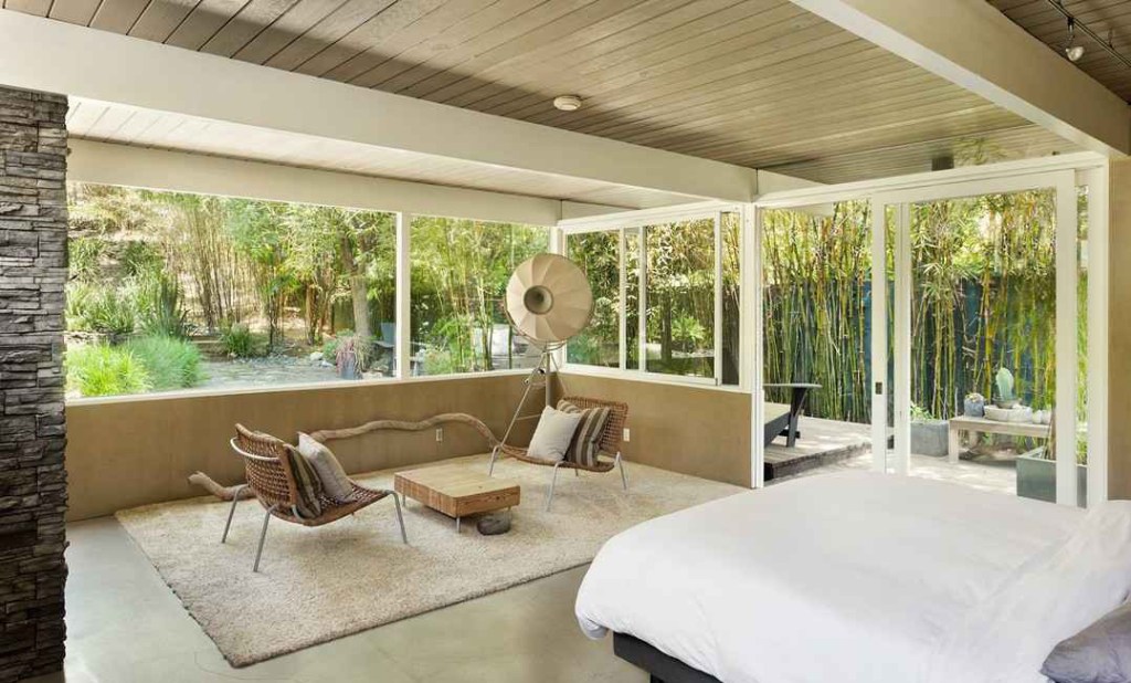 1945-1948 con los cristales hasta el techo, la Case Study House n.° 7 de San Gabriel, California, de una sola planta y construida con bloques de hormigón, presenta la particularidad de una luz cenital sobre un espacio con plantas del interior de la casa.