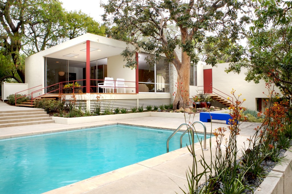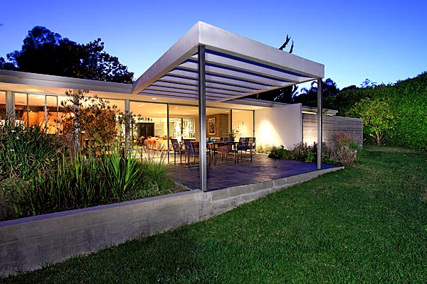 Se trata de postes y vigas o marcos de madera como los utilizados en las casas realizadas por los arquitectos Thornton Abell, Julius Ralph Davidson, Richard Neutra o Rodney Walker.