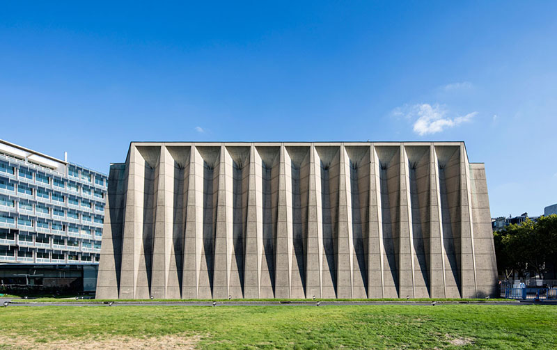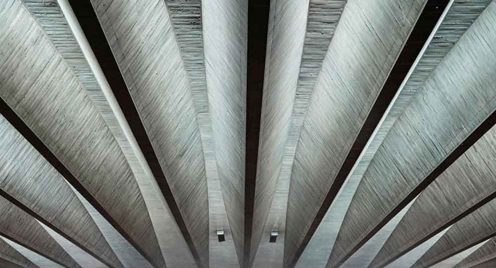 Los testeros y la cubierta en alas de mariposa son de hormigón plegado.
