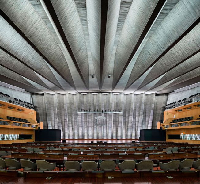 Alberga un edificio de secretariado (de ocho pisos y una planta en Y), el edificio de conferencias de forma trapezoidal y el edificio de oficinas de cinco pisos y planta cuadrada en la zona posterior.