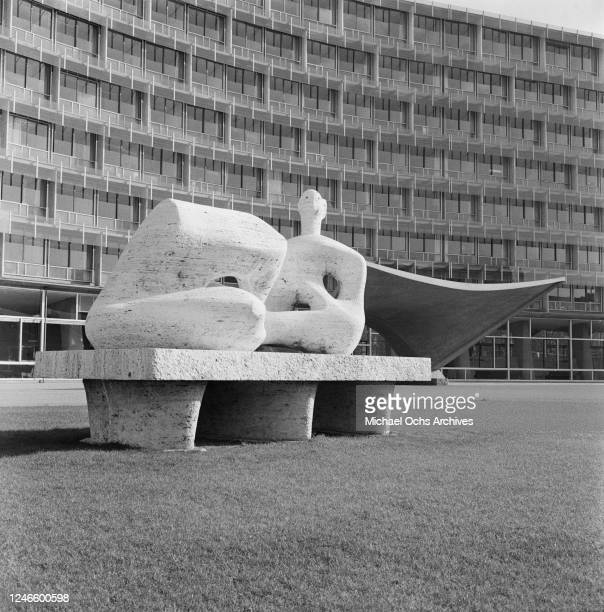 Los extensos espacios exteriores se jerarquizan con la Figura reclinada de Henry Moore y dos murales de Joan Miró.