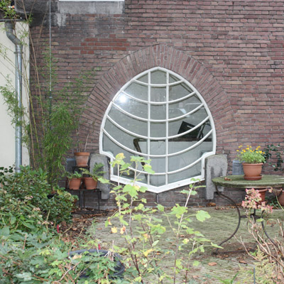 Wrought iron elements, usually painted black or very dark green (so called Amsterdam green), were used as simple decorative or functional elements.