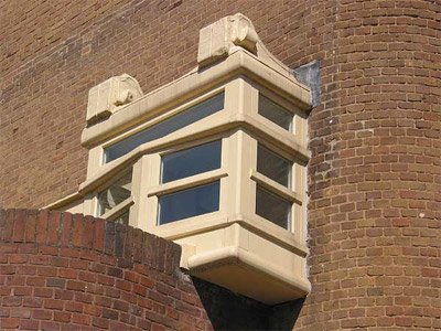 Het Schip (1921), con inusuales ventanas, contraventanas, puertas y ventanal.