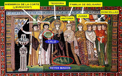 La imagen se hace a partir de un modelo de Constantinopla, ya que Teodora nunca pisa la Ravena.
