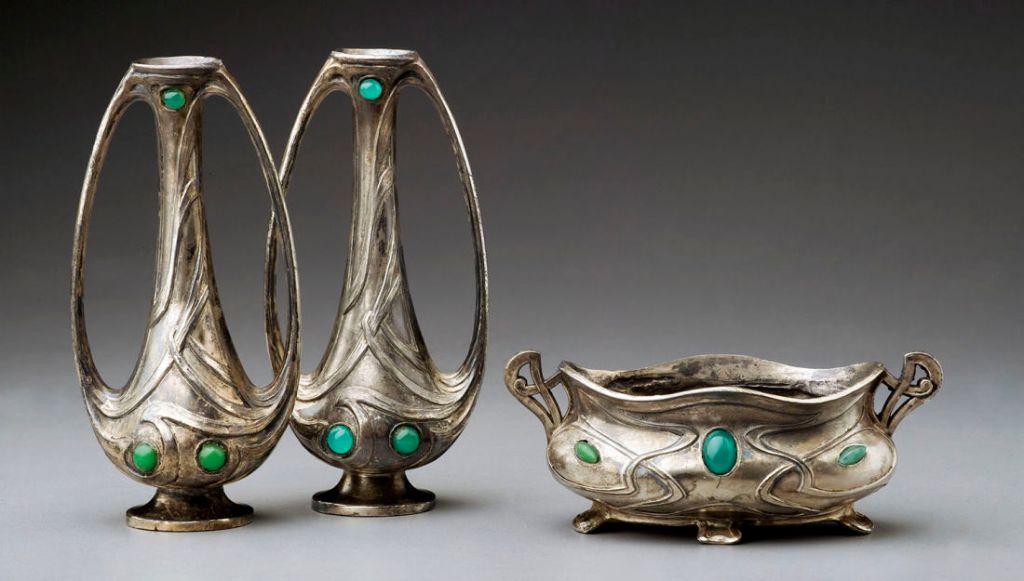 The internationalism of gallery owners, magazines and exhibitions gives rise to an expansion in shapes, curves and flowers that mixes with neo-Gothic influences and from the Far East.