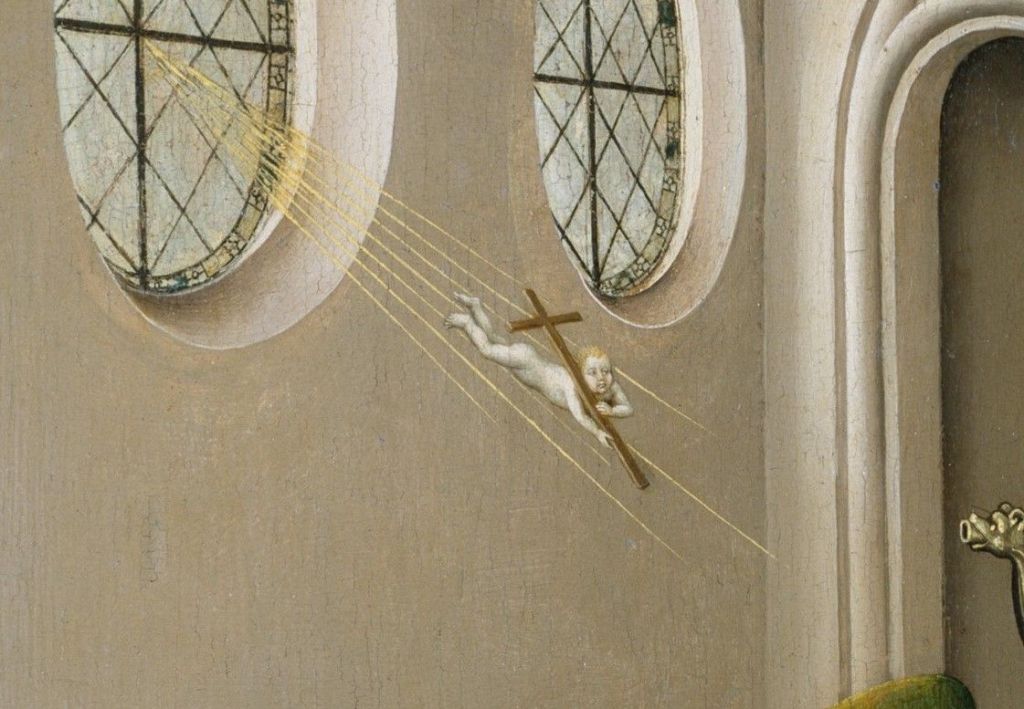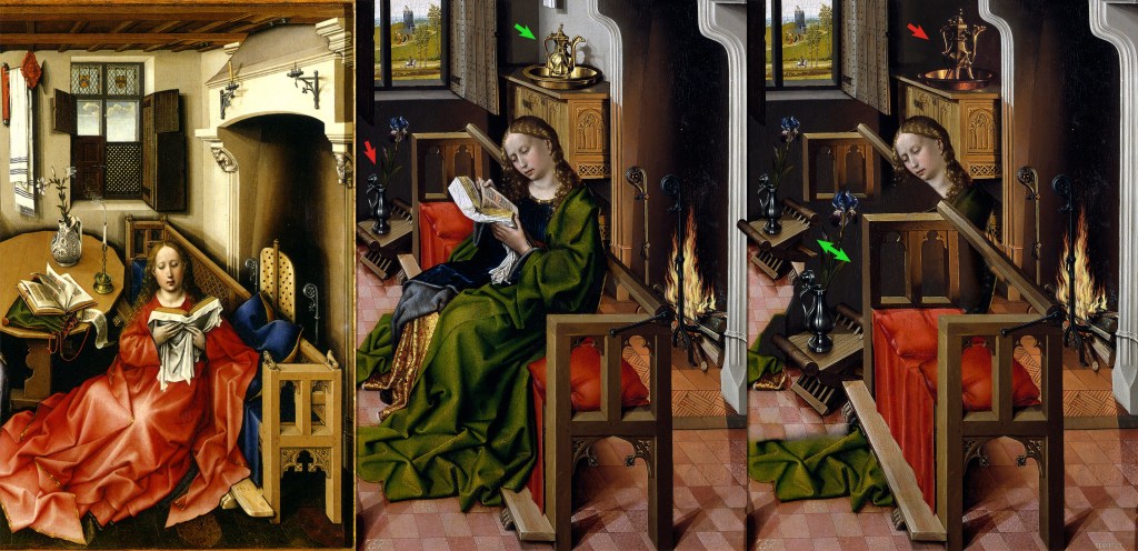 https://www.kellybagdanov.com/2019/11/08/hidden-symbols-in-campins-merode-altarpiece/ https://joyofmuseums.com/museums/united-states-of-america/new-york-museums/the-cloisters/annunciation-triptych-merode-altarpiece-by-robert-campin-met/