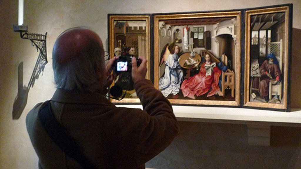 Esta obra maestra representa, de izquierda a derecha, a los donantes arrodillados en oración en un jardín, la Anunciación a María, que se desarrolla en un entorno doméstico contemporáneo, y a San José como carpintero. (ratonera)