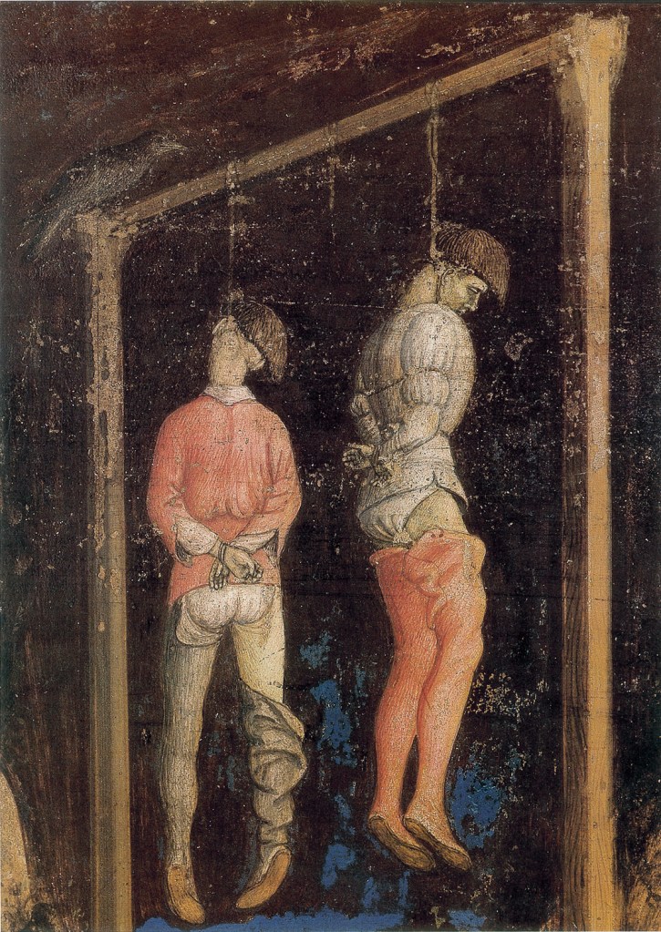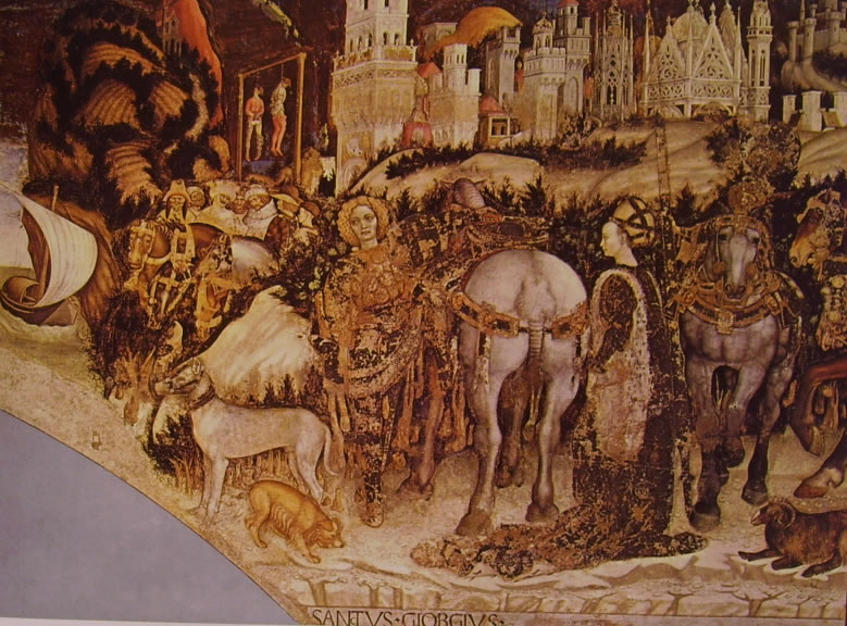 Cuando Gentile da Fabriano muere en Roma en 1427, esta trabajando en la Basílica de San Juan de Letrán, Pisanello completa los frescos de su antiguo maestro entre 1431 y 1432.