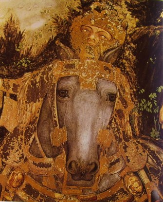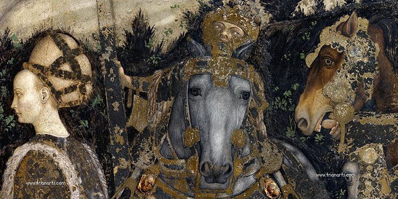 El fresco impresionante ciclo de escenas de guerra y caballería en el Palazzo Ducale di Mantova, en Mantua es probablemente de 1447.