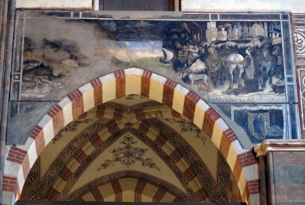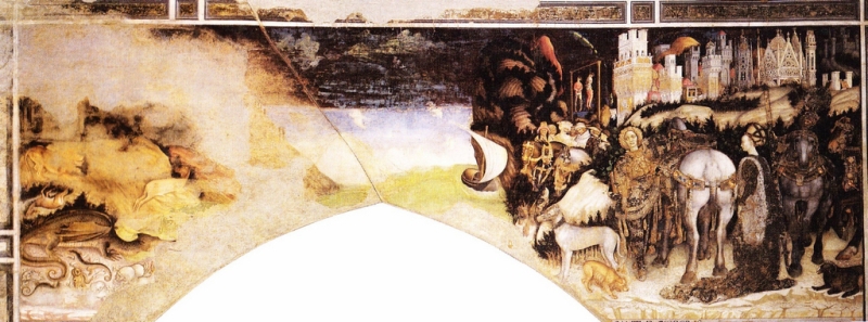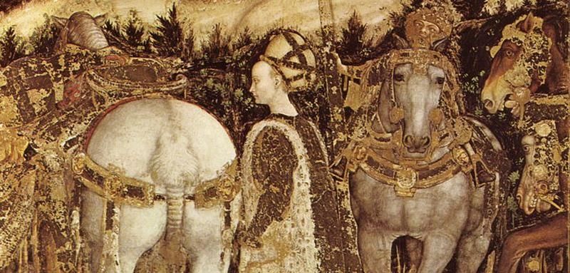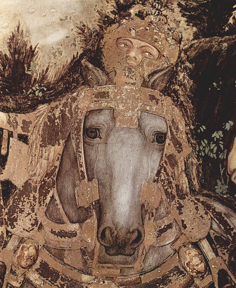 The impressive fresco cycle of war and cavalry scenes in the Palazzo Ducale di Mantova in Mantua is probably from 1447.