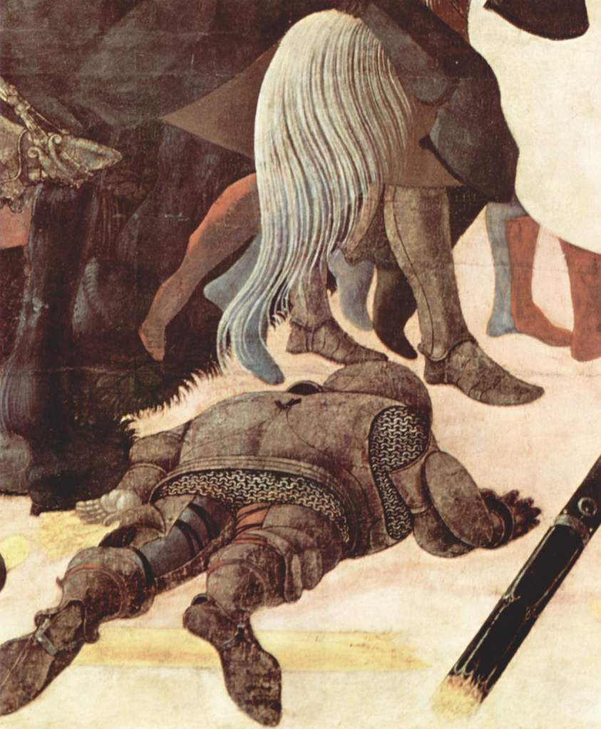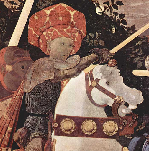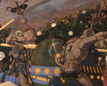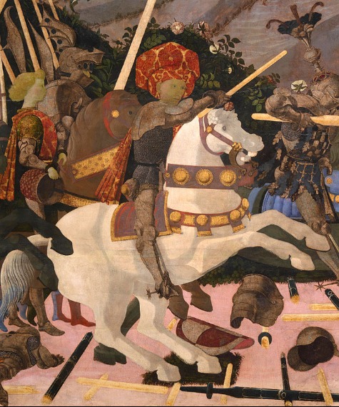 Por ello, la representación – sea a través de esculturas o pinturas – de los condottieri son comunes y Paolo Ucello pinta a varios de ellos junto a sus tropas.