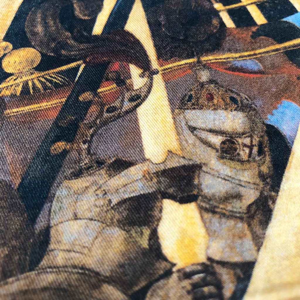 En esta obra, el pintor refleja una terrorífica maquinaria de guerra, a pesar de que esta transcurre sin derramamiento de sangre, como la mayoría de las batallas de la época.