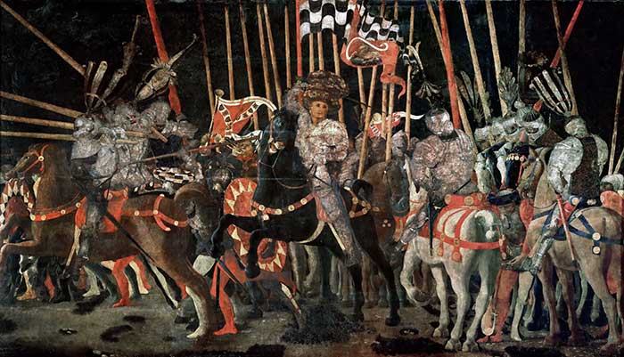 For this reason, the representation – either through sculptures or paintings – of the condottieri are common and Paolo Ucello paints several of them together with his troops.