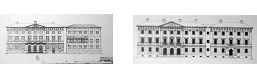 Pasa por varias fases, donde el nuevo edificio se aleja del antiguo poco a poco, adaptándose en su modernidad al edificio neoclásico.
