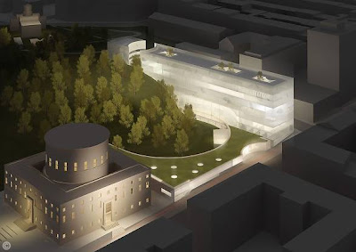 El nuevo acceso se debe a la ampliación, mientras que ahora se mantiene la actual entrada al edificio original como única entrada desde la plaza hasta el interior.