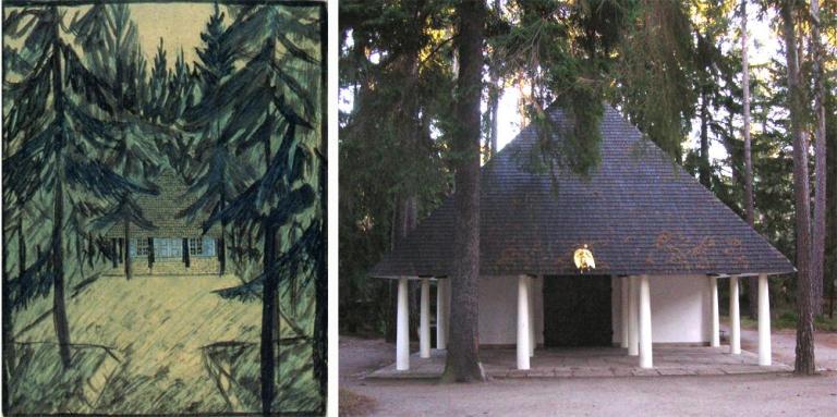Esto se puede observar en su pequeña Capilla del Bosque del Cementerio Sur de Estocolmo (1918-1920) y en la Biblioteca Municipal de Estocolmo (1927).