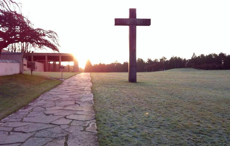 Cuando llegas al cementerio te encuentras con una tapia de piedra curva y convexa que te guía a la puerta, desde donde te conduce hasta el camino al crematorio en una estrecha hilada de piedra.