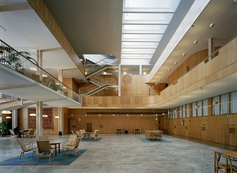 Todos los detalles son obra de Asplund, desde el mobiliario hasta las barandillas, al igual que las alfombras.