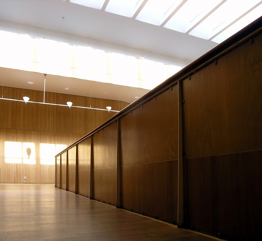 La luz desde la cubierta entra oblicuamente desde el sur a través de unas ventanas ocultas que distribuyen calidamente la luz por el vestíbulo, variando con la hora y la época del año.