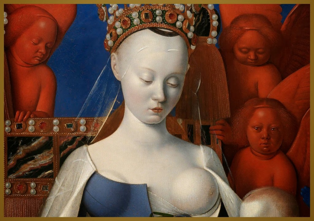 La Virgen de Melun o Virgen con el Niño y ángeles forma parte de un díptico elaborado por el pintor francés Jean Fouquet.