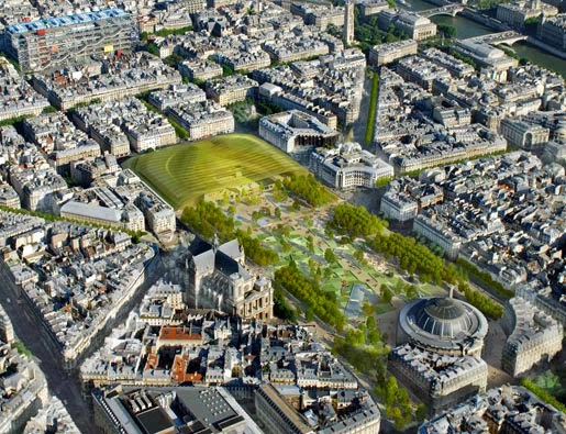 The new zonal scheme for Les Halles, after the disappearance of the markets, opened a new opportunity to revitalize the center of the right bank of the river Seine.