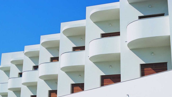 El complejo es un bloque de viviendas que se abre con forma de herradura en torno a un estanque.