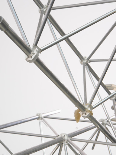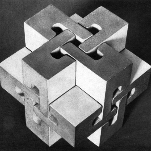 The construction of three- ldimensional lattices made of steel tubes and (nóded) knotted elements detérmined the later theoretical works of Wachsmann.