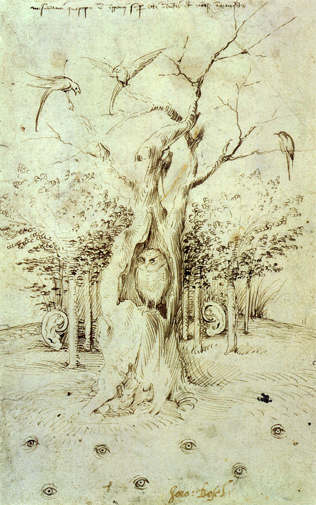En general, en esta obra el Bosco dibuja rápido, con trazos simples y de forma esquemática, para situar los principales elementos de la composición.