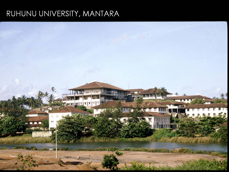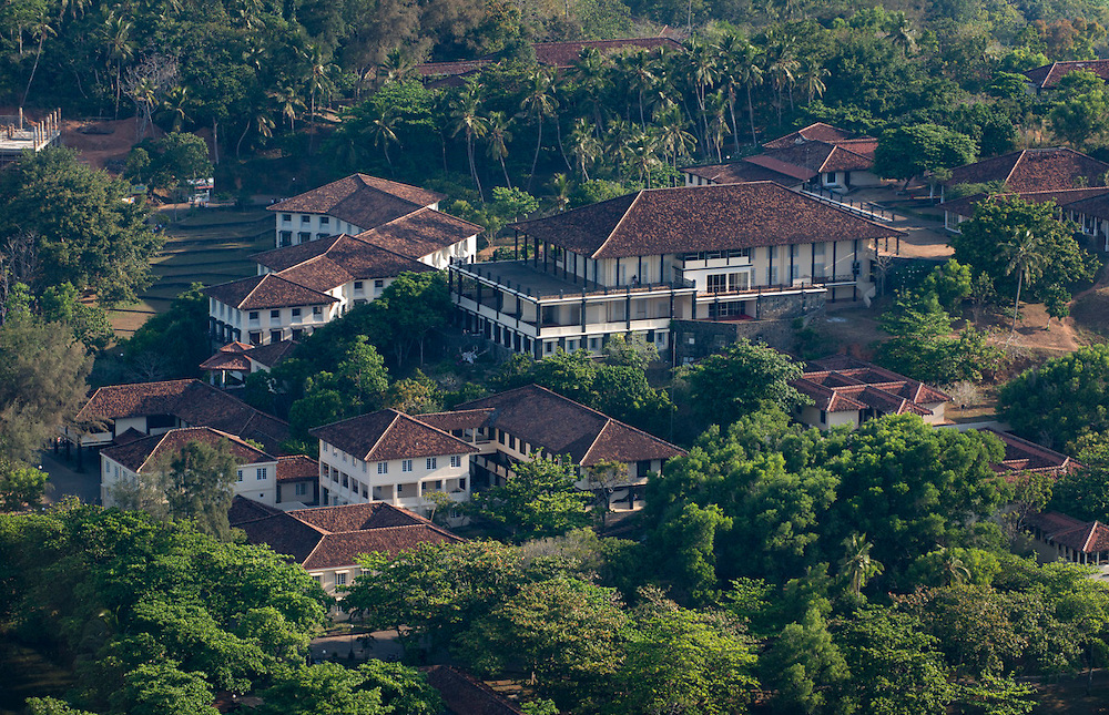 Al igual que los edificios de la Universidad de Ruhunu en Matara, Sri Lanka (1980-1986), que se articulan en una cadena de colinas e integran el tema del paisaje en múltiples patios interiores.