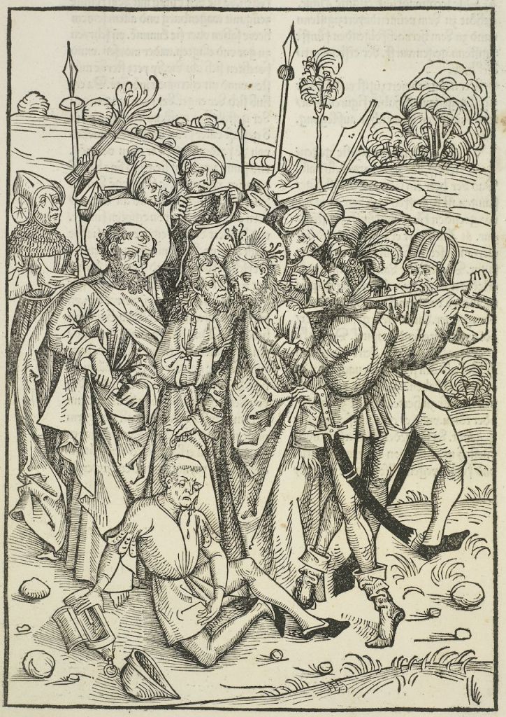 Cristo, en esta composición, emplea el expresivo gesto de contar sus argumentos con los dedos, cómputo digital que era un recurso empleado en las disputas teológicas.