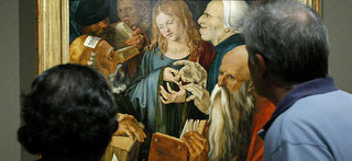 Las medias figuras y la colocación de unas cabezas sobre un fondo que casi no existe enlazan este óleo con composiciones italianas del siglo XV.