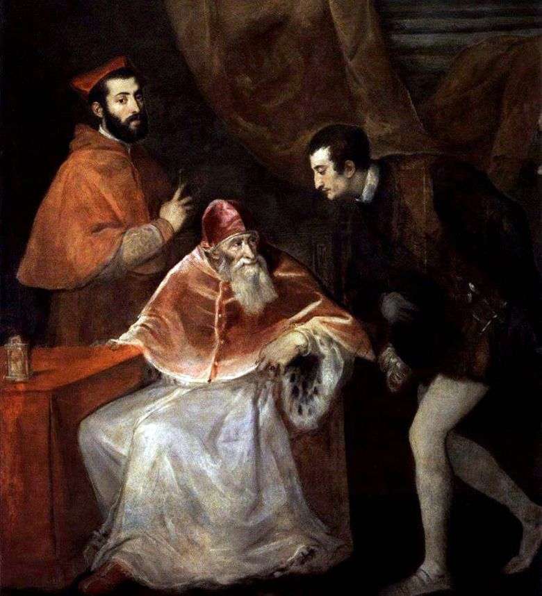Cuando Tiziano pinta al papa Farnesio en compañía de dos de sus nietos, tiene 77 años y se halla en una situación delicada.
