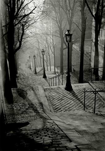 Brassai capta en sus fotos el aura de la noche de París, con sus transeúntes, su iluminación.