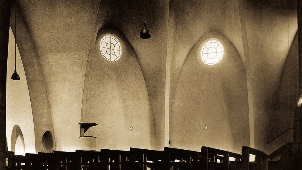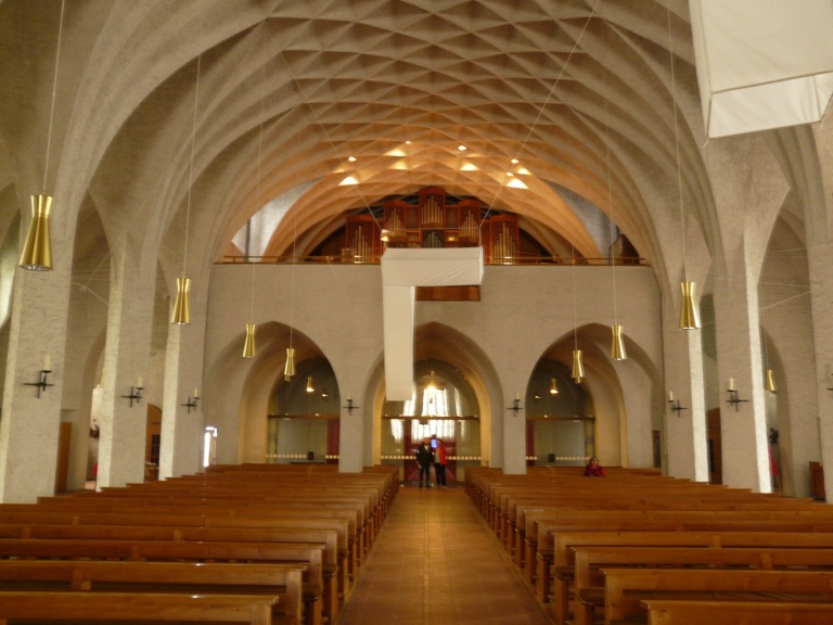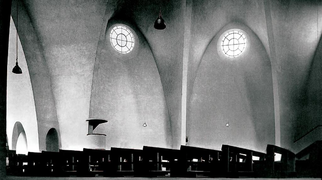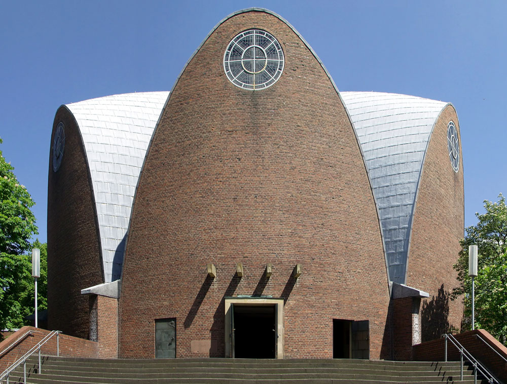 He himself built the churches of Christ the King in Mainz-Bischofsheim (1926) and of St. John the Baptist in Neu-Ulm (1926-1927), and the parish of Frielingsdorf, near Cologne (1926-1927), with a roof that dropped almost to the ground.
