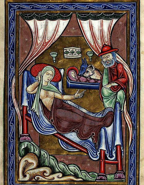 The midwife or midwives, appear in some scenes of the Birth, in order to give testimony of the birth of a virgin woman.