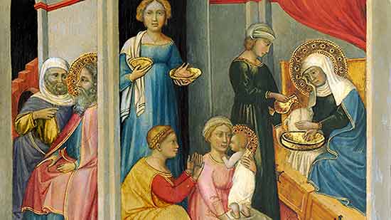 In the first two births they have Byzantine reminiscences and inspiration from the apocryphal gospels, visible in the way of Mary reclining and in the presence of the midwives, Salome and Zelomi.