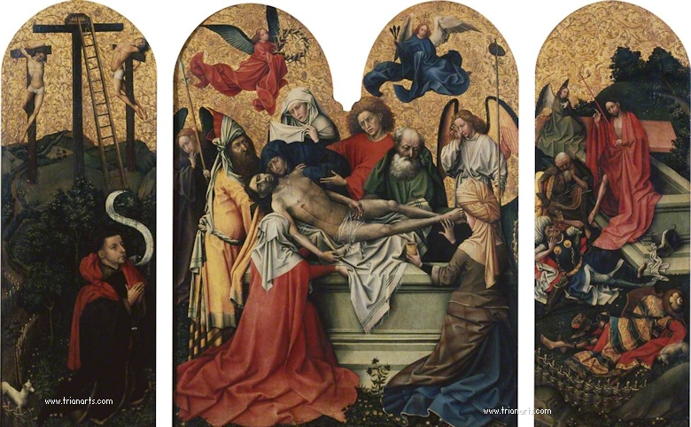 Este hecho se basa en un documento que cita a dos discípulos de Campin, Jaques Daret y Rogelet de la Pasture, este último, con toda probabilidad, Roger van der Weyden.