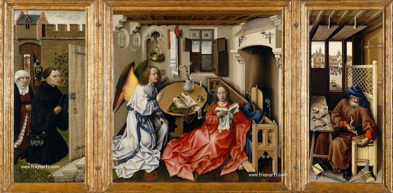 Los escasos documentos existentes, hablan de Robert Campin como maestro pintor en la ciudad de Tournai en 1406, que pinta entre 1410-1440, dirige un taller de importancia, y tiene aprendices como Roger van der Weyden y Haques Daret.