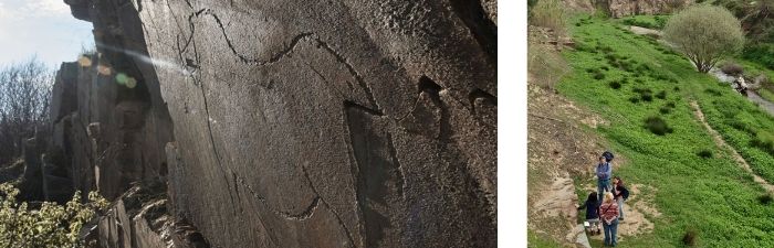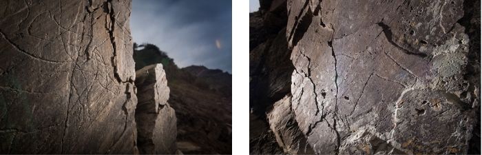 En ambos casos se pueden contemplar sobre las rocas de pizarra grabados de hace 20.000 años de diferentes animales como cánidos, ciervos, caballos, cabras o toros. Incluso, de especies extintas como el uro o el rinoceronte lanudo.