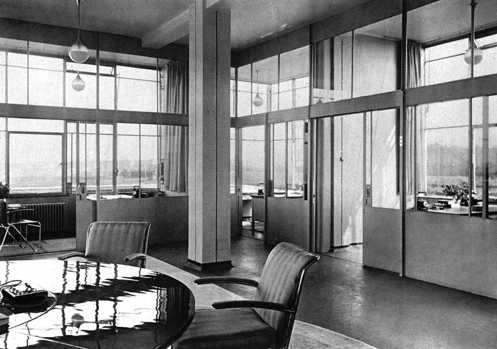 En el despacho compartido Brinkman se encargaba de los asuntos de organización y técnicos y Van der Vlugt de los arquitectónicos.
