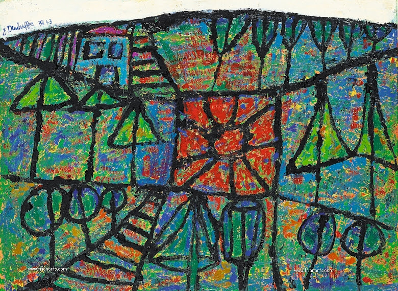 Dubuffet se centra en lo prosaico, despreciado por la élite cultural de la época, incluso mira al primitivismo y utiliza todo tipo de soportes.