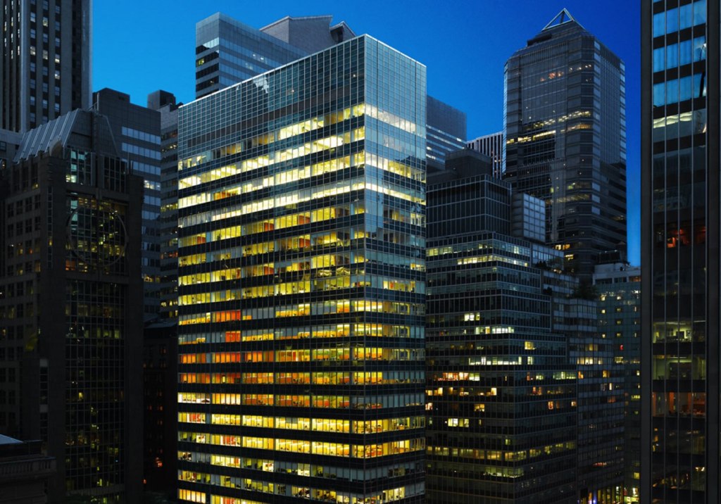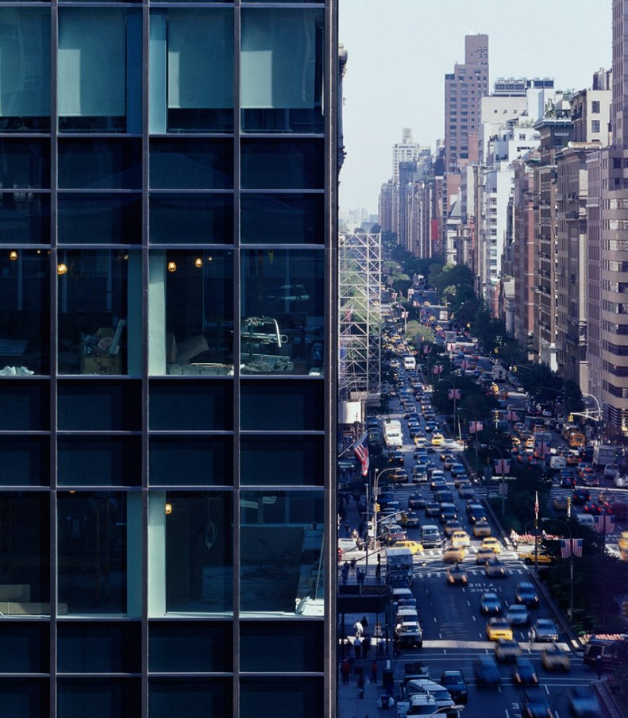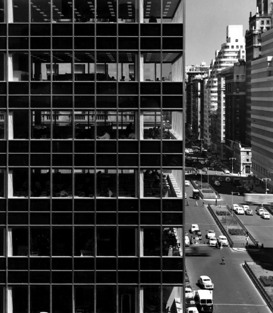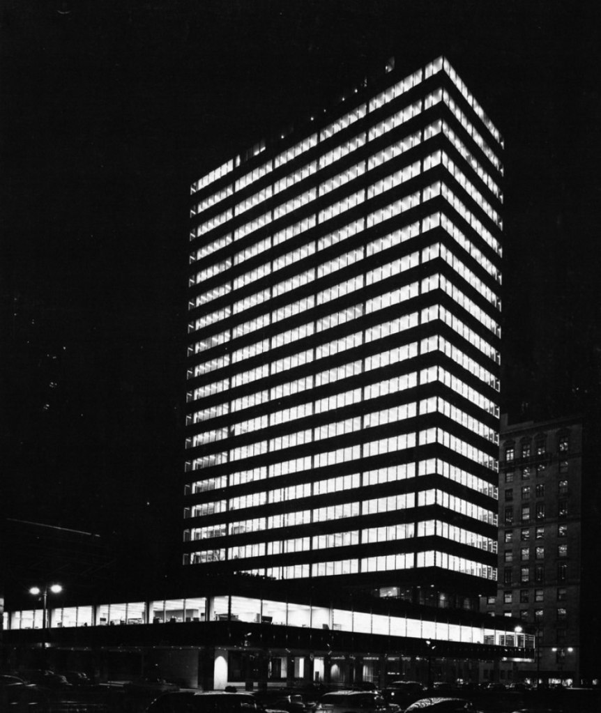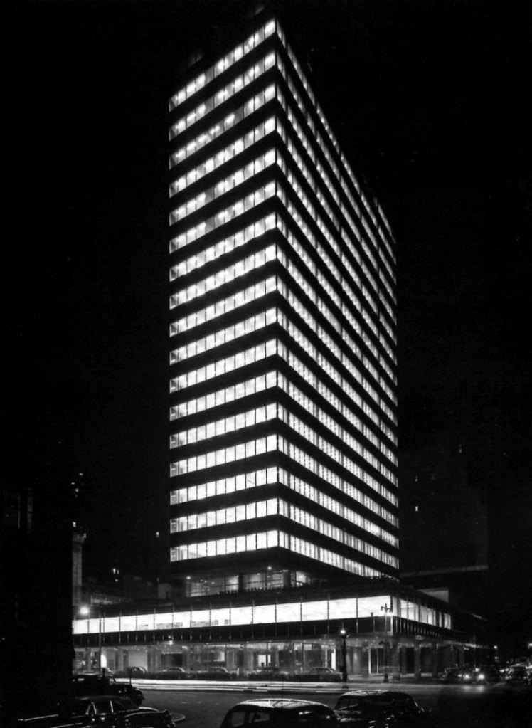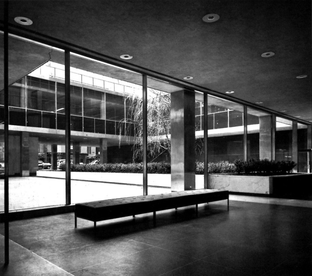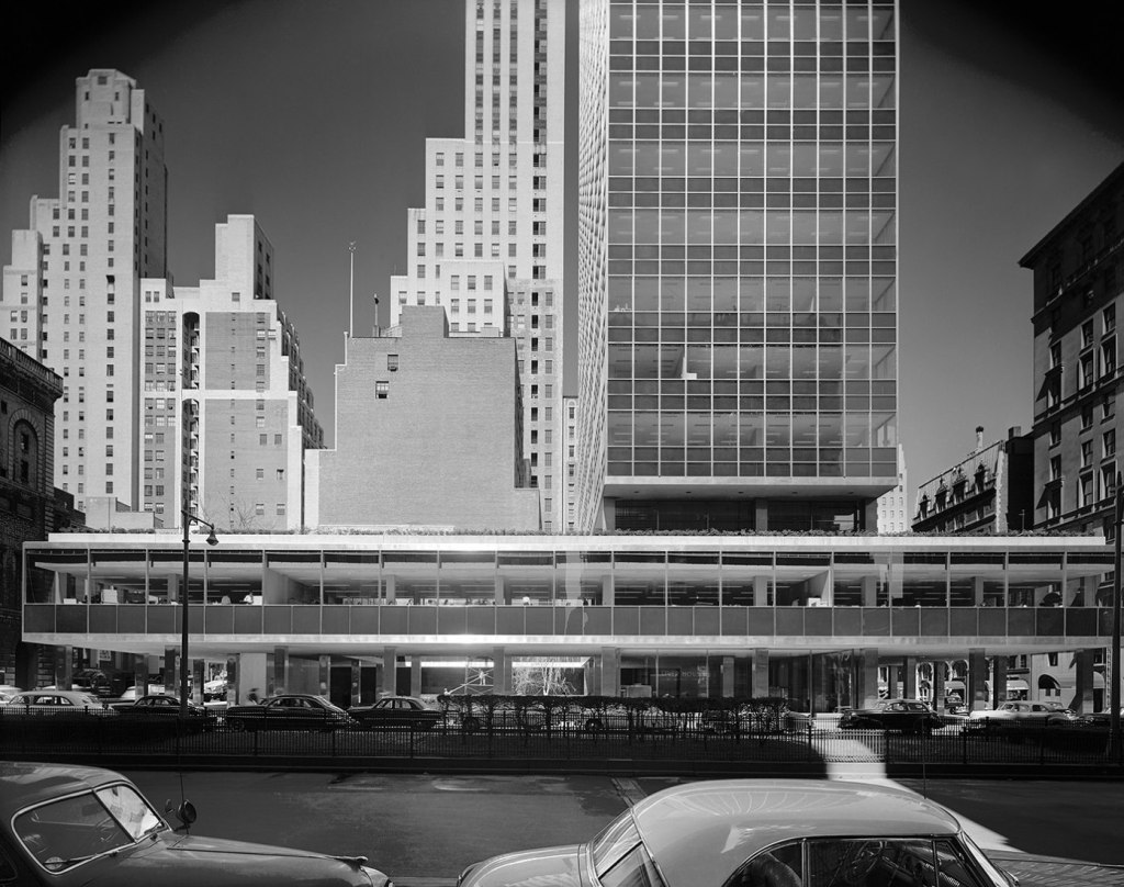 El edificio administrativo de 21 plantas de la Lever Brothers Company en Nueva York (1951-1952), un rascacielos con fachada de muro cortina sobre base plana, representa un nuevo prototipo de los edificios comerciales urbanos.