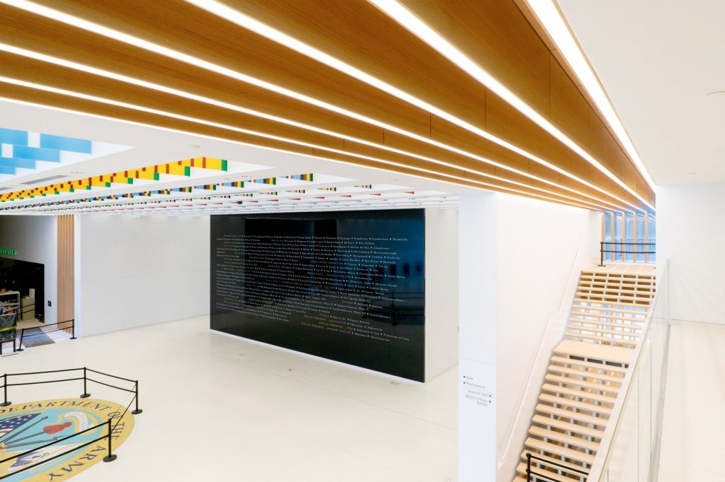 El Museo Nacional del Ejército de los Estados Unidos, realizado por SOM, es el primer museo nacional en contar la historia del servicio militar más antiguo de los Estados Unidos, desde sus primeros días como milicia colonial hasta su estado actual. El diseño del museo evoca los principios del Ejército: es disciplinado, modesto y riguroso. La simplicidad y la nitidez del cerramiento exterior, hecho de paneles de acero inoxidable aislados contra la lluvia y con un grosor de ocho pulgadas, permite un reflejo en la fachada, transformando el carácter del edificio en cada estación y hora del día.