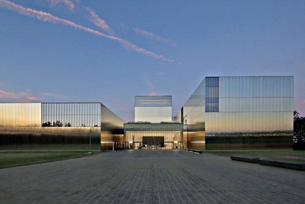 El Museo Nacional del Ejército de los Estados Unidos (NMUSA), diseñado por Skidmore, Owings & Merrill (SOM), se inauguró el 11 de noviembre (un feriado federal en los Estados Unidos) en Fort Belvoir en el condado de Fairfax, en las afueras de Washington, DC. Virginia.Con una superficie de 34 hectáreas, NMUSA se concibió como un centro cultural y educativo multifacético, una institución dedicada a los 245 años de historia del Ejército de los EE. UU.SOM proyectó los 17.187 metros cuadrados de NMUSA compuesto por una serie de modernos pabellones revestidos de acero inoxidable, dedicados a la exhibición, un anfiteatro de 200 asientos y espacios para eventos especiales.SOM también planeó y diseñó los próximos espacios del complejo, la «puerta de entrada simbólica» del Ejército según un comunicado de prensa de SOM, incluido un jardín conmemorativo, un campo de desfiles con tribuna y un sendero interpretativo del Ejército que atravesará los terrenos del museo.Elevándose 30 metros sobre el paisaje en su punto más alto, con la cuadrícula ordenada de la fachada de paneles de acero inoxidable cortados con láser, que establece una «sensación de rigor y disciplina», el museo logra una presencia clásica, monumental pero accesible, que, según SOM, está destinado a proyectar decoro y confianza.Las características sostenibles incluyen mayor aislamiento, acristalamiento mejorado, iluminación LED de alta eficiencia, controles automáticos de iluminación natural y sensores de presencia, accesorios de plomería de bajo flujo y un techo verde. El edificio está diseñado para obtener la certificación LEED® Silver.