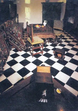 El suelo de mármol ajedrezado y el candelabro dorado son dos ejemplos de objetos que normalmente estan reservados entonces para casas de las clases pudientes, por lo que se consideran idealizados.