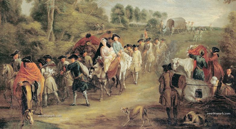 El tema de las fiestas al aire libre, son muy populares en la sociedad cortesana del siglo XVIII.