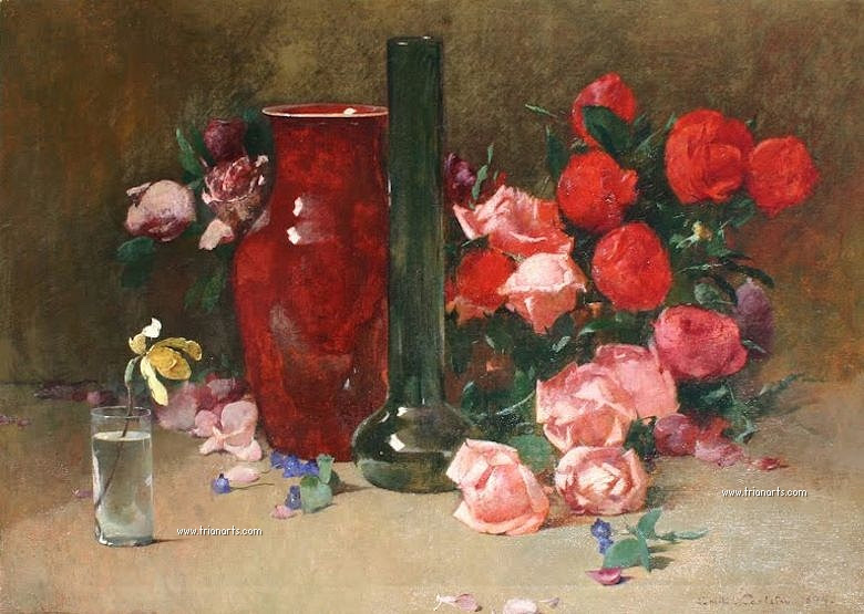 1884 regresa a Europa, donde realiza bodegones florales para el distribuidor Theron J. Blakeslee.