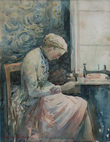Durante un tiempo trabaja en un despacho de arquitectura y da clases de arte con el pintor danés, especializado en paisajes de marinas, Laurits Bernard Holst.
