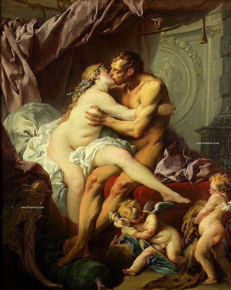 En su obra plasma escenas mitológicas, alegorías y retratos, entre ellos varios de Madame de Pompadour.