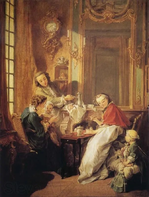 Hecho a pintar escenas pastoriles bucólicas y temas mitológicos cargados de erotismo que causan enfado entre conservadores, pinta ahora una escena doméstica en un acomodado entorno burgués